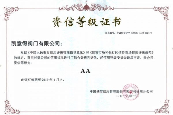 Creditworthiness certificate Home >> Quality >> Enterprise certification