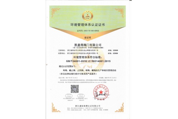 环境管理体系认证证书1